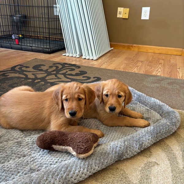 Athena & Buckley are excited to announce they are planning to have another litter in 2026! Their puppies will be Medium Golden to Dark Golden and be around 60-65 pounds full grown. They will also have the field coat so easy to groom! Puppies will come with dew claws removed, utd on vaccines, dewormed, microchipped, have a 2 year health guarentee and a health certificate. We also introduce potty training, crate training and socialize all babies before they go home.